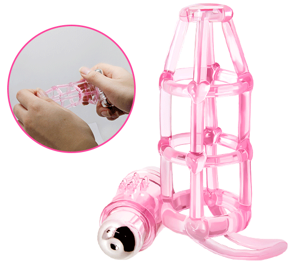 Плетеная насадка с клиторальным вибростимулятором и с петлей для мошонки